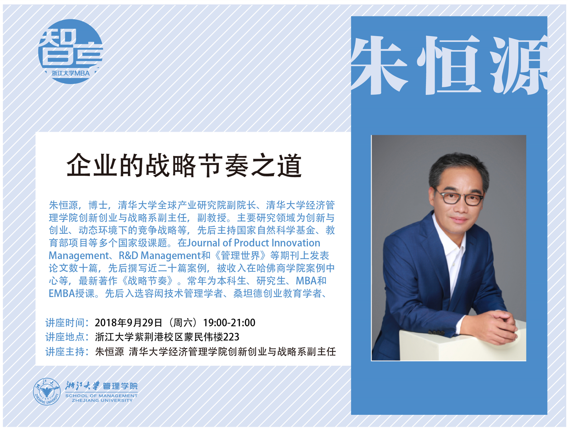 朱恒源,博士,清华大学全球产业研究院副院长、清华大学经济管理学院创新创业与战略系副主任,副教授。主要研究领域为创新与创业、动态环境下的竞争战略等,先后主持国家自然科学基金、教育部项目等多个国家级课题。在Journal of Product Innovation Management、R&D Management和《管理世界》等期刊上发表论文数十篇,先后撰写近二十篇案例,被收入在哈佛商学院案例中心等,最新著作《战略节奏》。常年为本科生、研究生、MBA和EMBA授课。先后入选容闳技术管理学者、桑坦德创业教育学者、富布莱特学者等,曾获北京市优秀教学成果二等奖等。