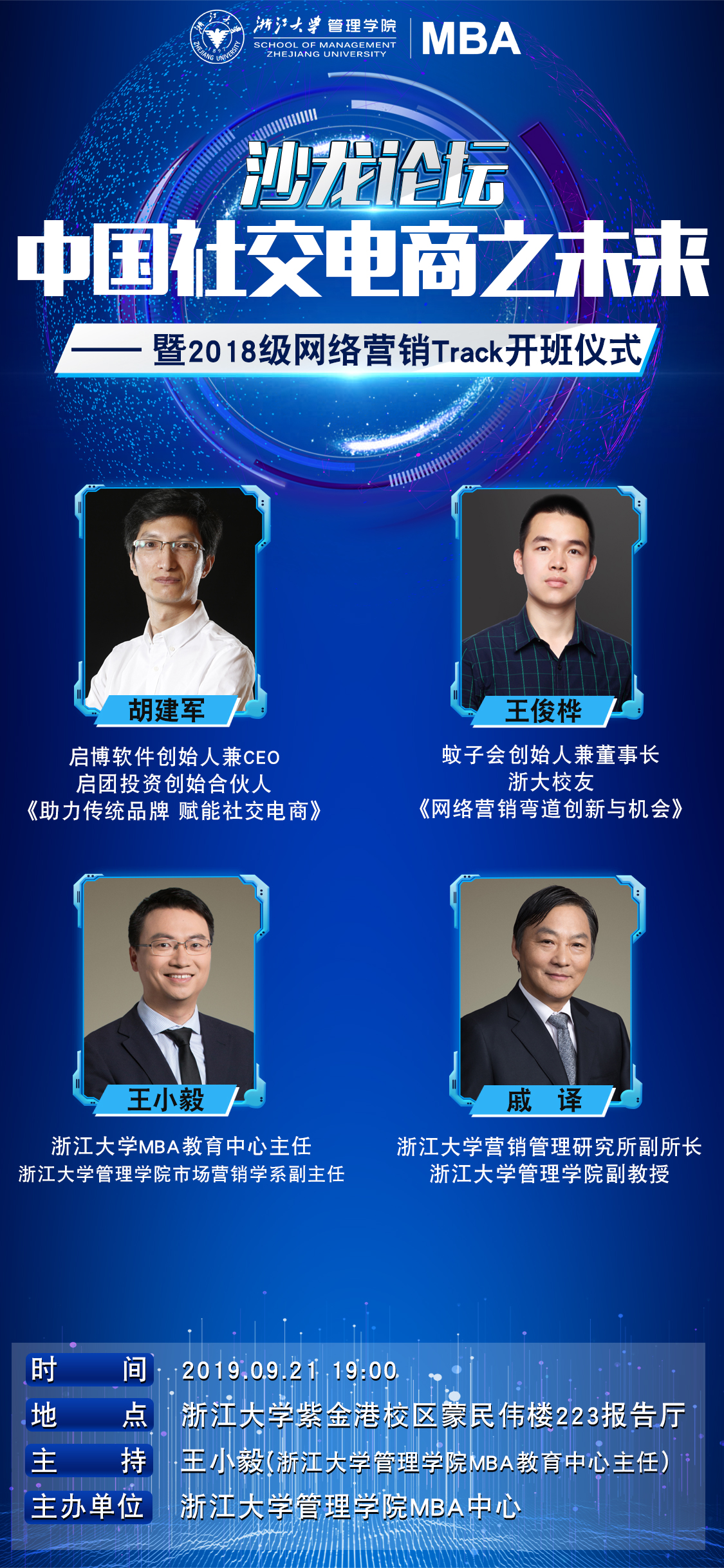 备注:本活动是2018级浙江大学MBA网络营销TRACK开班仪式,可提供50个名额向TRACK外同学、校友和社会人士开放。名额有限,报满即止。