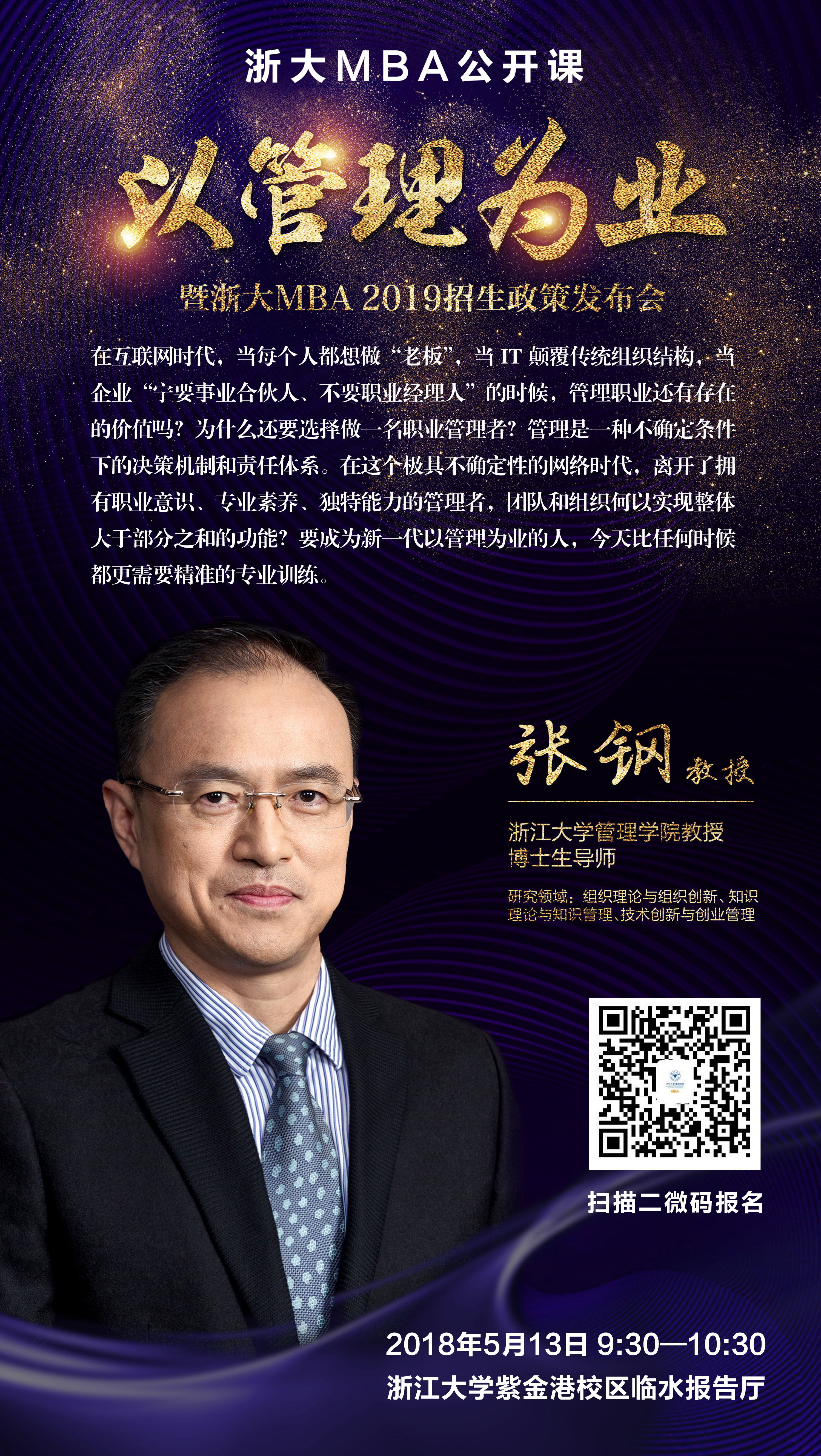 9:30-10:30 浙大MBA公开课:以管理为业