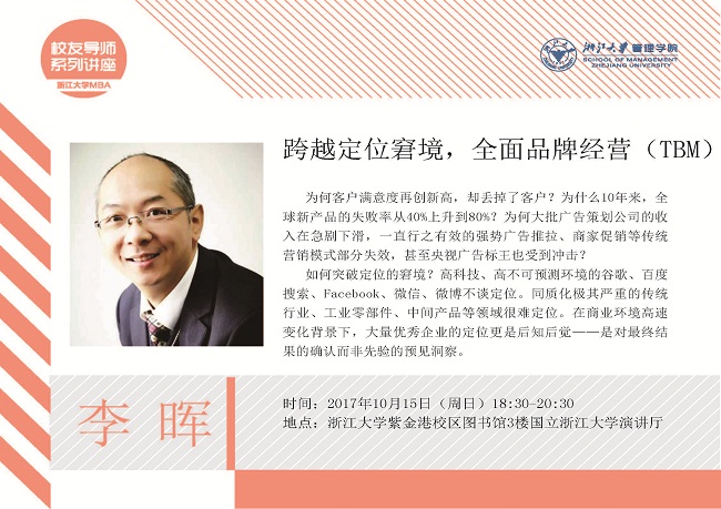 亲历十余行业,参与创办浙大网新集团,历任多家中国500强高管的资深战略品牌专家李晖和你一起《跨越定位窘境,全面品牌经营(TBM)》。方法+实战,揭示谜底,穿透商业本质,走出品牌经营误区。