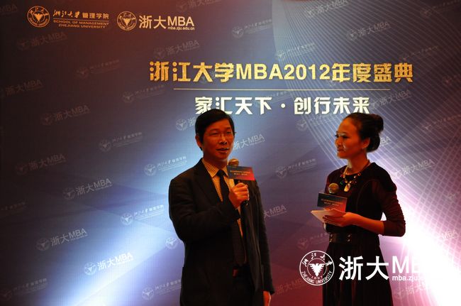 2013年1月12日,家汇天下, 创行未来——浙江大学MBA2012年度盛典在皇冠海外海酒店隆重举行。浙江大学发展委员会副主席、原浙江大学党委副书记王玉芝女士,浙江大学校发展联络办公室副主任顾玉林先生,浙江大学管理学院书记、副院长应飚教授,浙江大学管理学院副院长卫龙宝教授,浙江大学管理学院副院长陈凌教授,浙江大学管理学院副院长张钢教授,浙江大学管理学院副书记、校友办公室主任李小东副教授,浙江大学MBA教育中心主任寿涌毅副教授,浙江大学MBA中心副主任陈超老师等共同出席了当天的盛典。当天的盛典还邀请到了网易公司创始人、CEO丁磊先生与大家分享他“创业的那些事儿”。