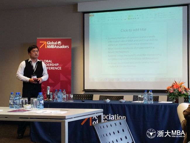2013年2月21日-2月25日 浙大2012AMBA全球大使林伟杰和2013全球大使王一晴赴南非开普敦参加Association of MBAs 2013 Global Leadership Conference.来自全球30多所商学院的 AMBA大使们相聚在Stellenbosch University of Business School,围绕”responsible and sustainable leadership”这一主题就如何推进AMBA Global AMBAssador 项目展开热烈的讨论。