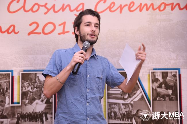 来自法国的Antoine和比利时的Alexandra代表GEP四期全体外国学员致辞。他们一再感谢感谢中国同学给予他们无微不至的照顾和帮助,分享了他们作为外国人在中国学习和生活的感受。