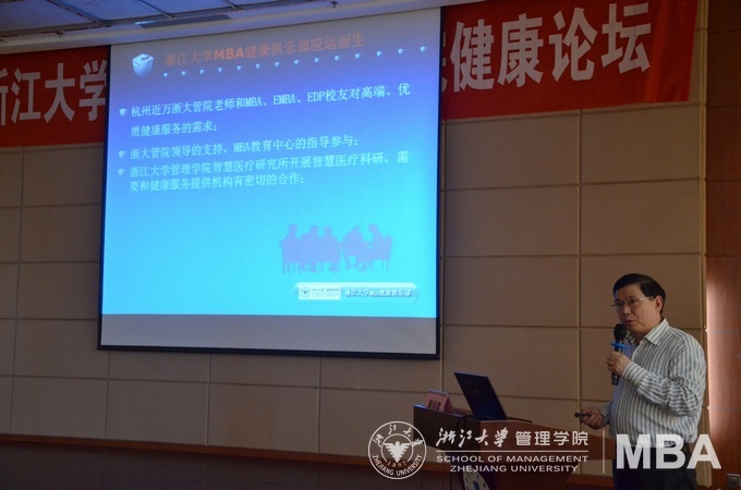 根据2013年12月浙江大学管理学院与浙江省人民医院签订的战略合作协议(新闻链接:点击),浙江大学-浙江省人民医院健康论坛将每月举行一次,地点分别在浙江大学和浙江省人民医院,论坛的目的除传播健康理念普及健康知识外,还希望通过活动形成以校友为核心的医疗、健康相关产业的社交圈,欢迎浙江大学校友和企业家朋友届时报名参加。同时,浙江大学MBA健康俱乐部也持续面向浙江大学管理学院MBA、EMBA、EDP校友和其他研究生、本科生同学开放加入申请,欢迎各位校友加入。