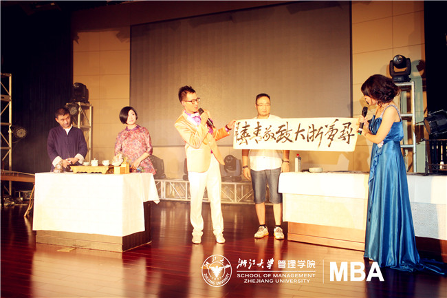 两个多月的辛苦努力,一周一张的工作推进表,一次次的创意迭出,一遍遍的剪辑修改,一版版的绚烂海报,一趟趟的游说赞助商,当最后炫酷的预告视频发布的时候,所有人都被吊足了好奇心,无比盼望能早点看到晚会。9月21日晚,“寻梦浙大.致敬青春”--2014年浙江大学MBA新生联谊晚会终于和大家见面了。晚上19:00整,晚会在一组激情热辣的开场舞中拉开了帷幕。浙江大学管理学院副院长陈凌教授、浙江大学管理学院党委副书记阮俊华老师、浙大MBA中心主任寿涌毅老师、副主任陈超老师等学院教职工及校友代表出席了当天的晚会。首先,浙江大学管理学院副院长陈凌老师代表学院做了热情的致辞,并向考入管院的2014级MBA新生致以衷心的祝贺和热烈的欢迎。