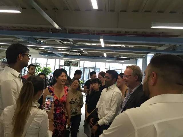 2016年9月22日下午,浙江大学管理学院MBA部分同学与来访的德国GSO商学院同学们一起走进了杭州梦想小镇,开展参访活动。刚一下车,大家立刻被这座有些神秘色彩的小镇所吸引,兴奋地在小镇门前一起合影,也拉开了参访活动的序幕。