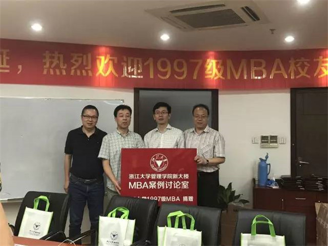 97级校友纷纷表示,母校和MBA教育对他们的人生和事业上的选择产生了很大的影响,在浙大120周年校庆之际,为了表示对母校深切地感恩之情,97级全体同学共同捐款,捐献成立一间案例讨论室,为管理学院的新大楼添砖加瓦,此举更是对学弟、学妹教学上的硬件设施提供了学长们的暖心支持。